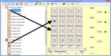 Bauteile können vom linken Rand mit Drag & Drop in die Schablone gezogen werden. Hierfür wählt man ein Icon aus, hält es mit der linken Maustaste fest und zieht es mit gedrückter Maustaste an die gewünschte Position.