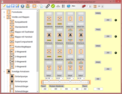 Zusammengestellte Verteiler lassen sich speichern. Im CATS Rohrleitungsbau lässt sich die Datei importieren, um ein 3D Modell zu erzeugen. Die generierten Bauteile lassen sich mit den bekannten RLB-Funktionen weiter bearbeiten und editieren.